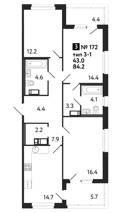 Все квартиры сдаются с белой отделкой. Стены выровнены и подготовлены под окраску (штукатурка и шпаклевка). По полам выполнена «плавающая» стяжка. Оконные откосы отделаны гипсокартоном, зашпаклеваны и окрашены. Установлены розетки, выключатели, квартирный щиток и домофонная панель, металлическая входная дверь с высоким уровнем взломостойкости. Стены в санузлах с дополнительной гидроизоляцией.