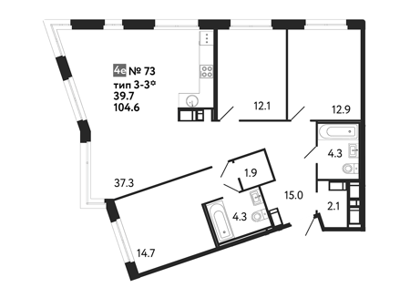 Визуально ЖК состоит из трех разновысотных блоков: двух по 12 этажей и одного из 8 этажей. Но фактически в комплексе четыре секции–парадные.