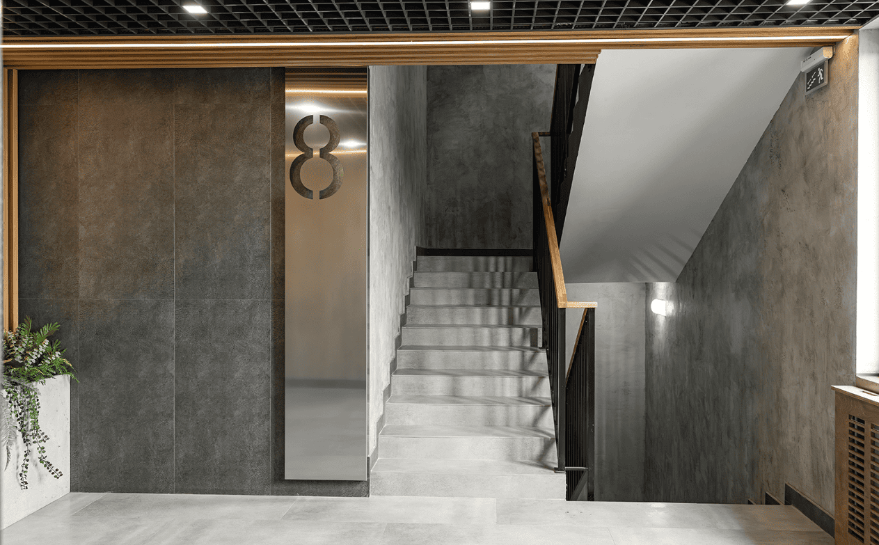 Качественные материалы отделки МОП, круглосуточно работает диспетчер. Через него можно вызвать необходимые службы и получить оперативную помощь.