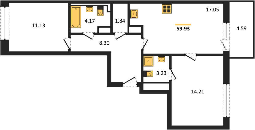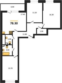 Площадь от 78.3 м2