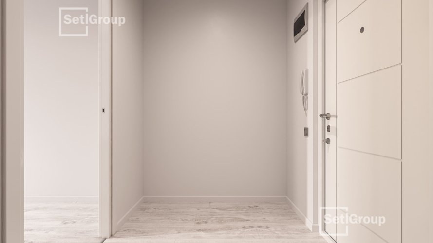 Отделка представлена в двух цветовых вариантах — White и Silver. Они отличаются только цветом напольного покрытия — светлый и более темный оттенки серого. Акцент сделан на напольном покрытии, которое является доминантой интерьера. В остальном — оформление будет идентичным.