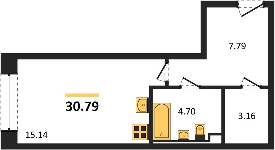 Площадь от 33.1 м2